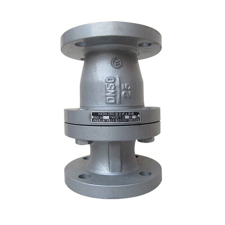 立式止回閥嚴格按GB12235標準設計制造,閥瓣沿著中心定位作升降運動 , 襯套采用耐磨性能好,摩擦系數小的特殊材料制作,動作靈活可靠 . 密封性能優良。產品廣泛應用于石油、化工、制藥、電力行業等各種工況的管路上。